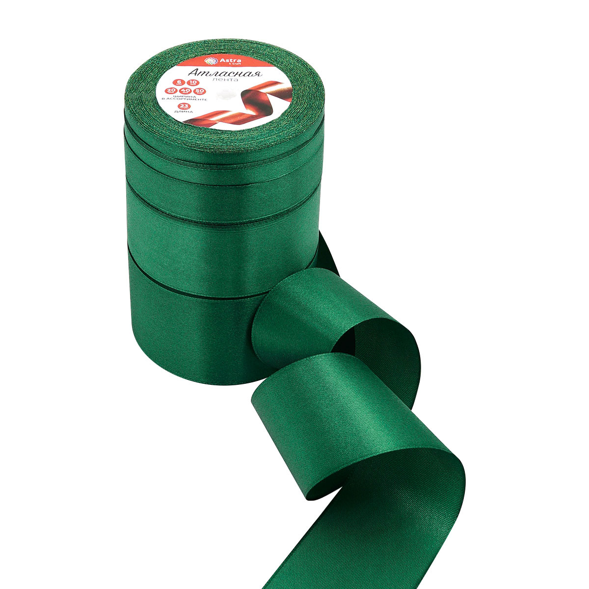 Набор атласных лент 5 размеров 6.0 мм, 10.0 мм, 20.0 мм, 40.0 мм, 50.0 мм / 23 метра, изумрудный