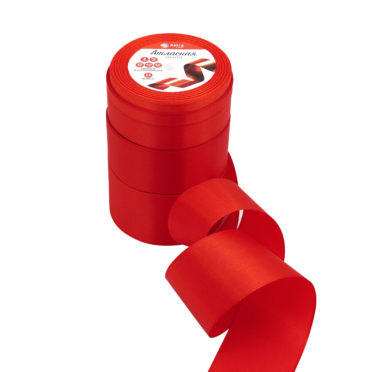Набор атласных лент 5 размеров 6.0 мм, 10.0 мм, 20.0 мм, 40.0 мм, 50.0 мм / 23 метра, красный