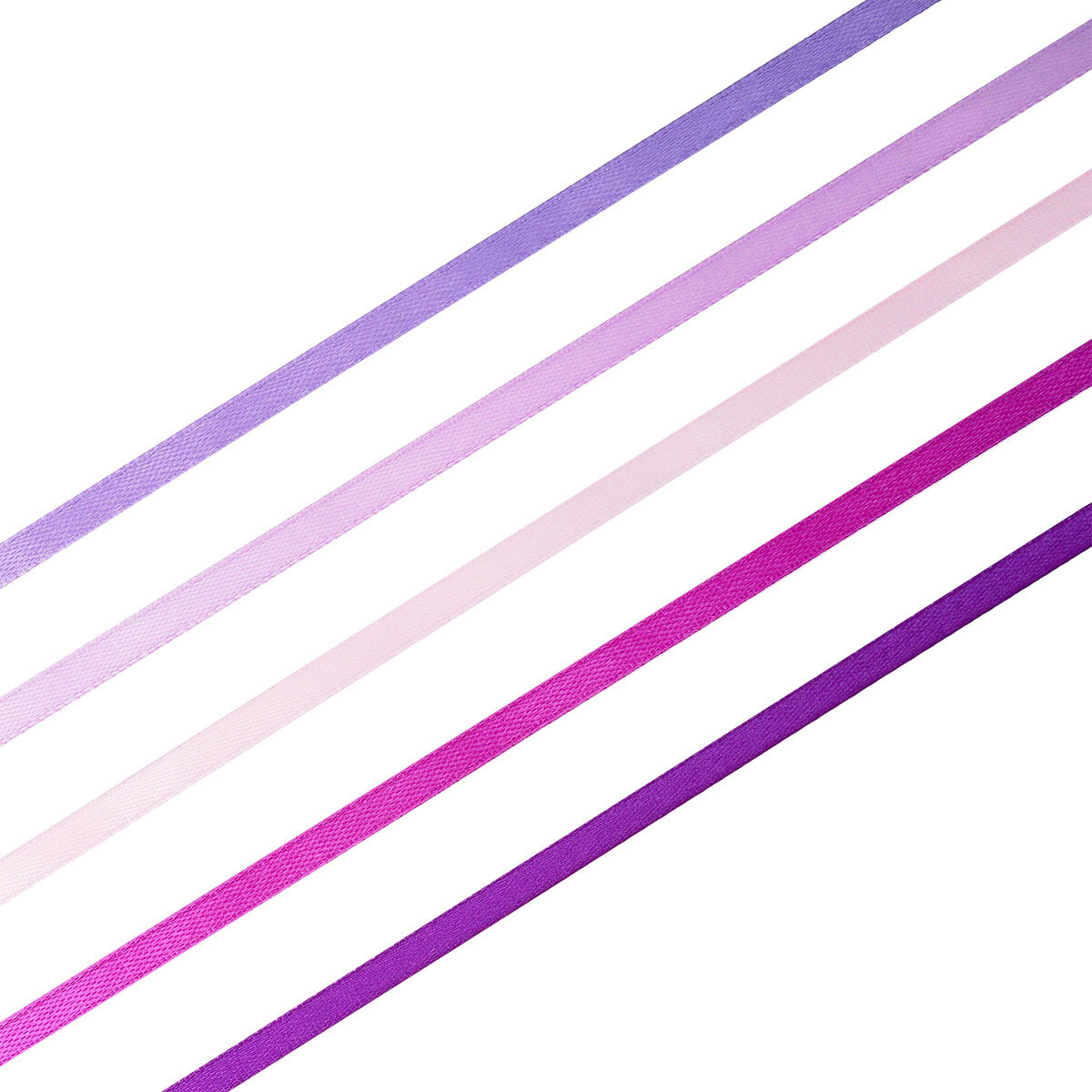 Набор атласных лент 5 цветов по 6.0 мм / 23 метра, фиолетовый микс