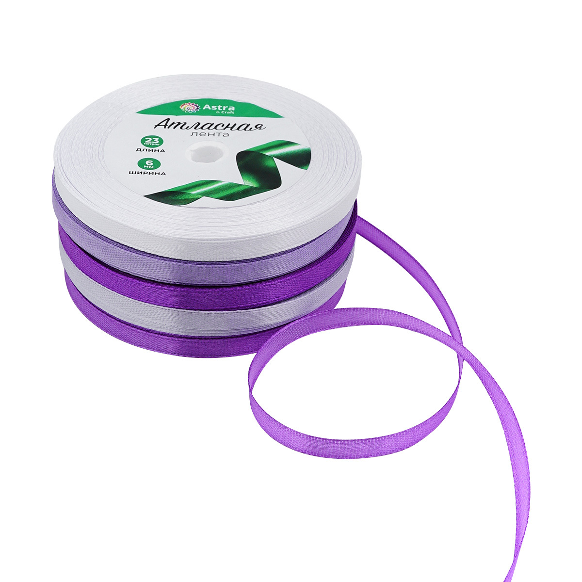 Набор атласных лент 5 цветов по 6.0 мм / 23 метра, фиолетовый микс