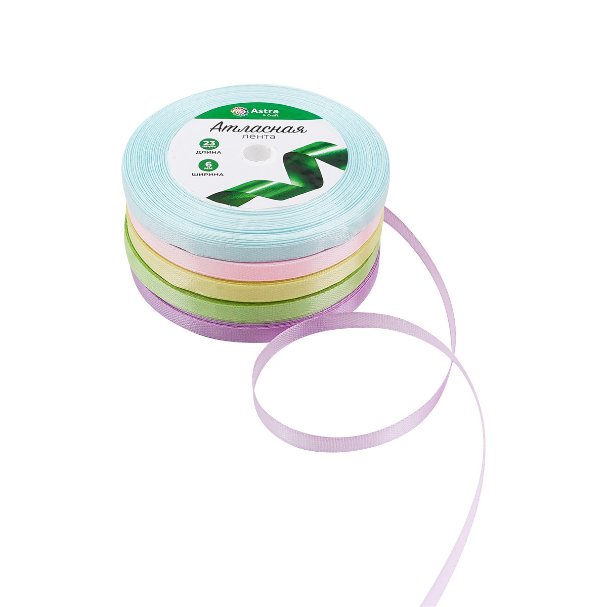 Набор атласных лент 5 цветов по 6.0 мм / 23 метра, пастельный микс