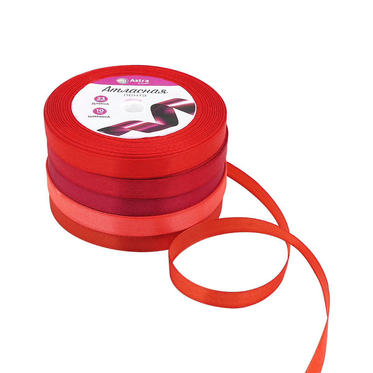 Набор атласных лент 5 цветов по 10.0 мм / 23 метра, красный микс