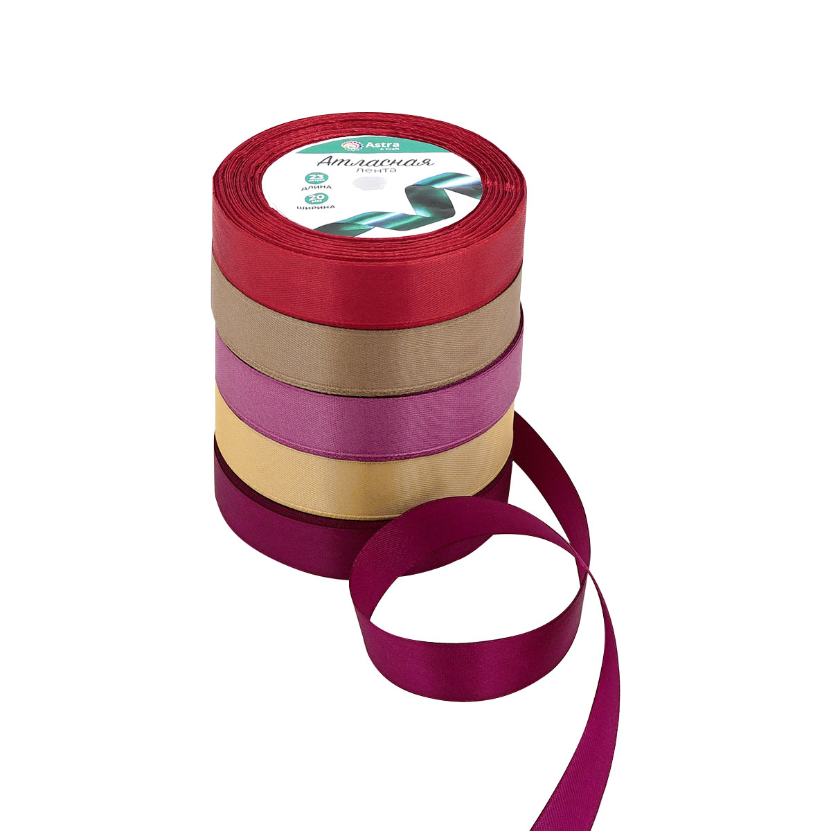 Набор атласных лент 5 цветов по 23.0 мм / 23 метра, бордово-золотой микс