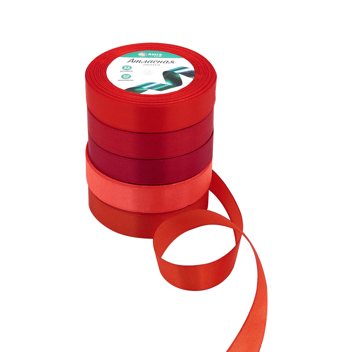 Набор атласных лент 5 цветов по 23.0 мм / 23 метра, красный микс