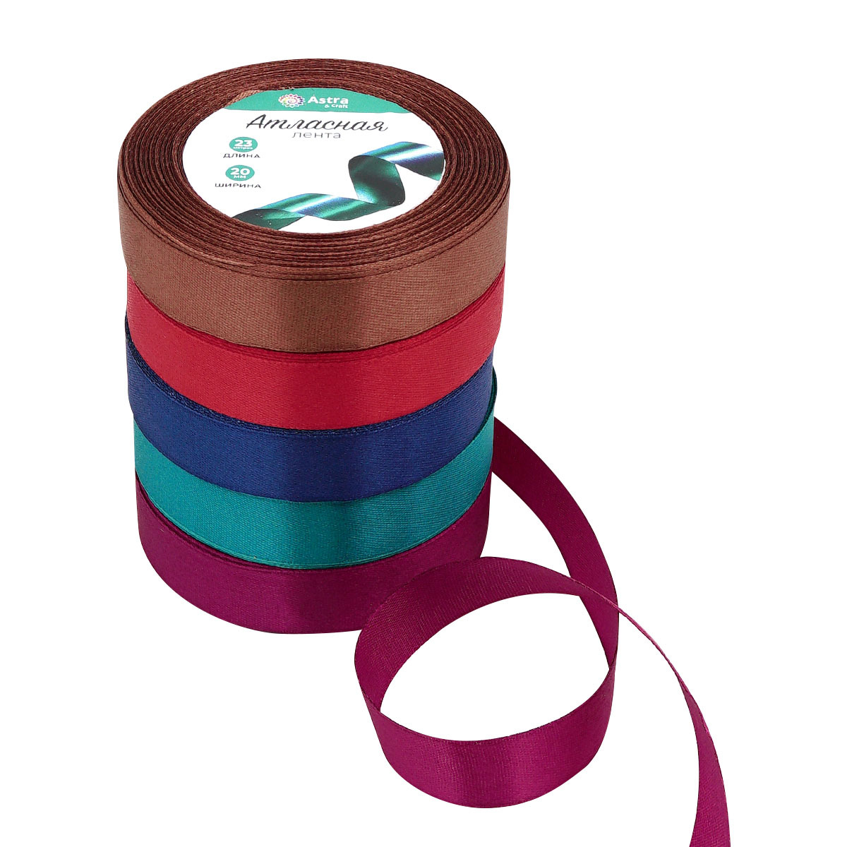 Набор атласных лент 5 цветов по 23.0 мм / 23 метра, темный микс