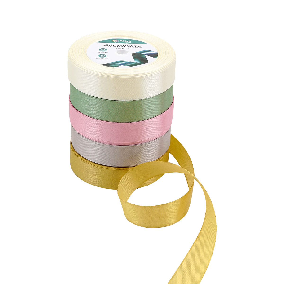 Набор атласных лент 5 цветов по 23.0 мм / 23 метра, весенний микс