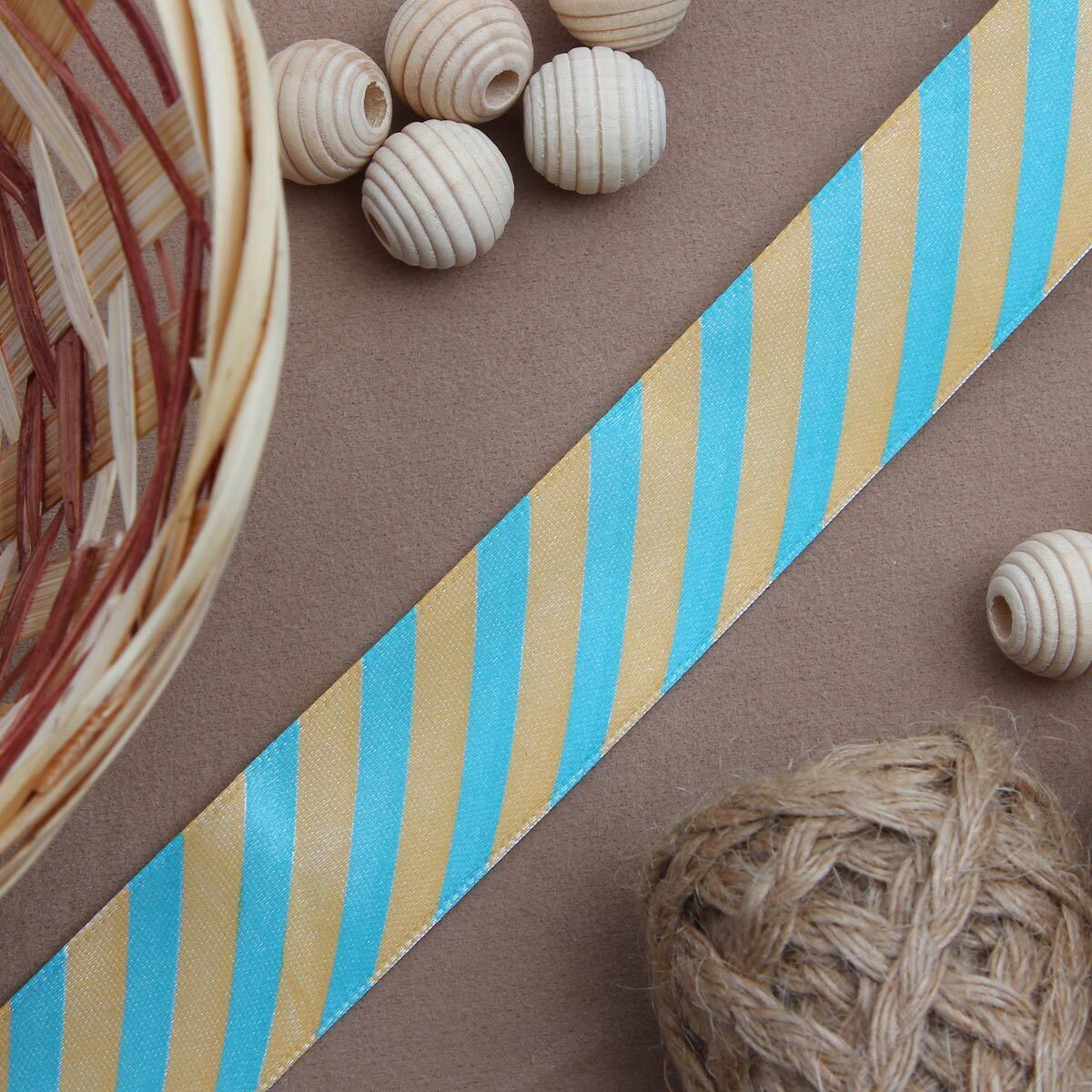 Лента атласная с рисунком 25.0 мм / 3 метра, Диагональ (желто-голубой), Globus
