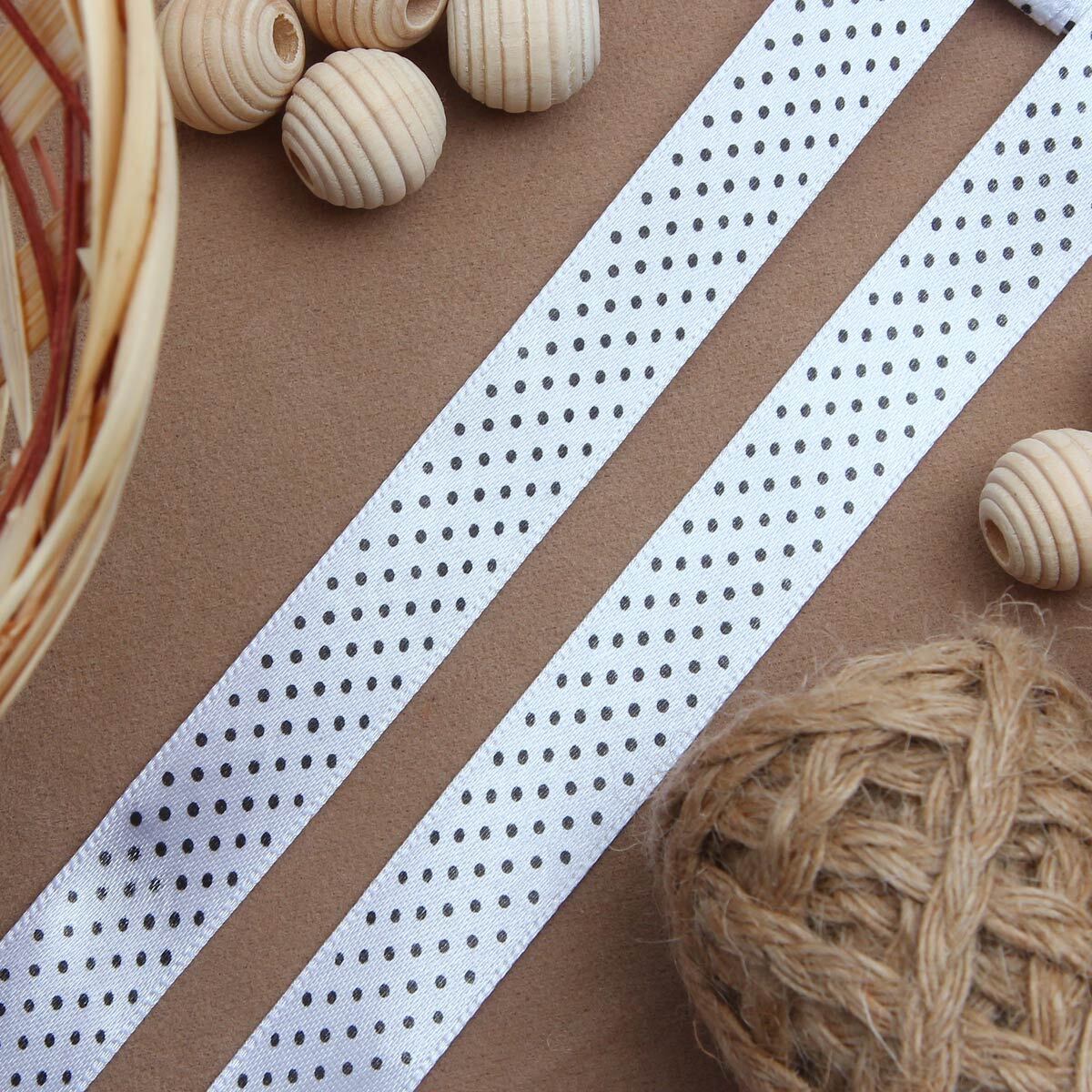 Лента атласная в горошек 15.0 мм / 3 метра, черно-белый, Globus