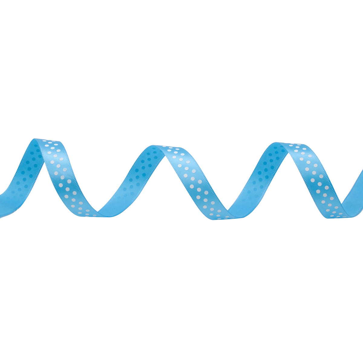 Лента атласная в горошек 15.0 мм / 22.5±1 метров, голубой, Globus