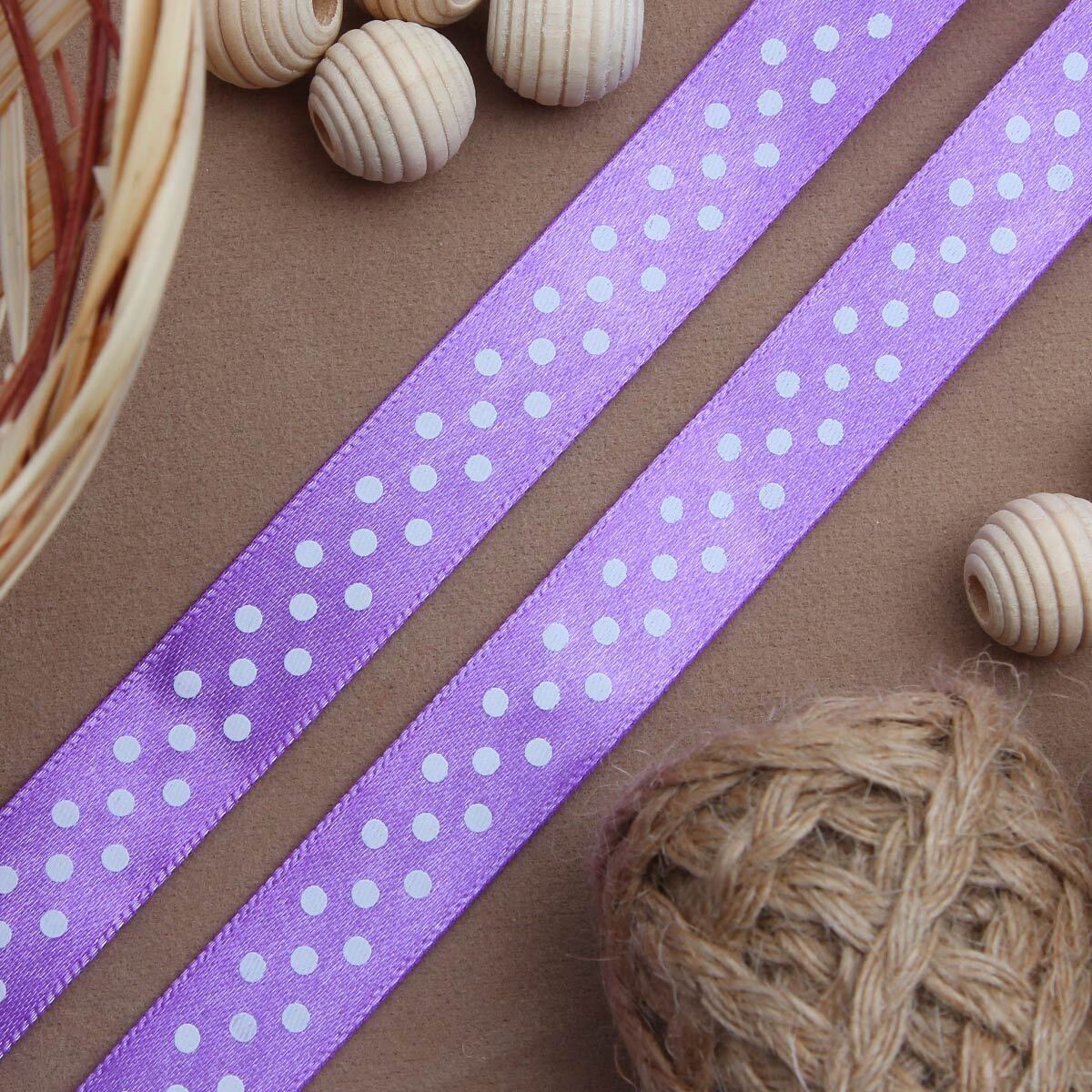 Лента атласная в горошек 15.0 мм / 3 метра, сиреневый, Globus