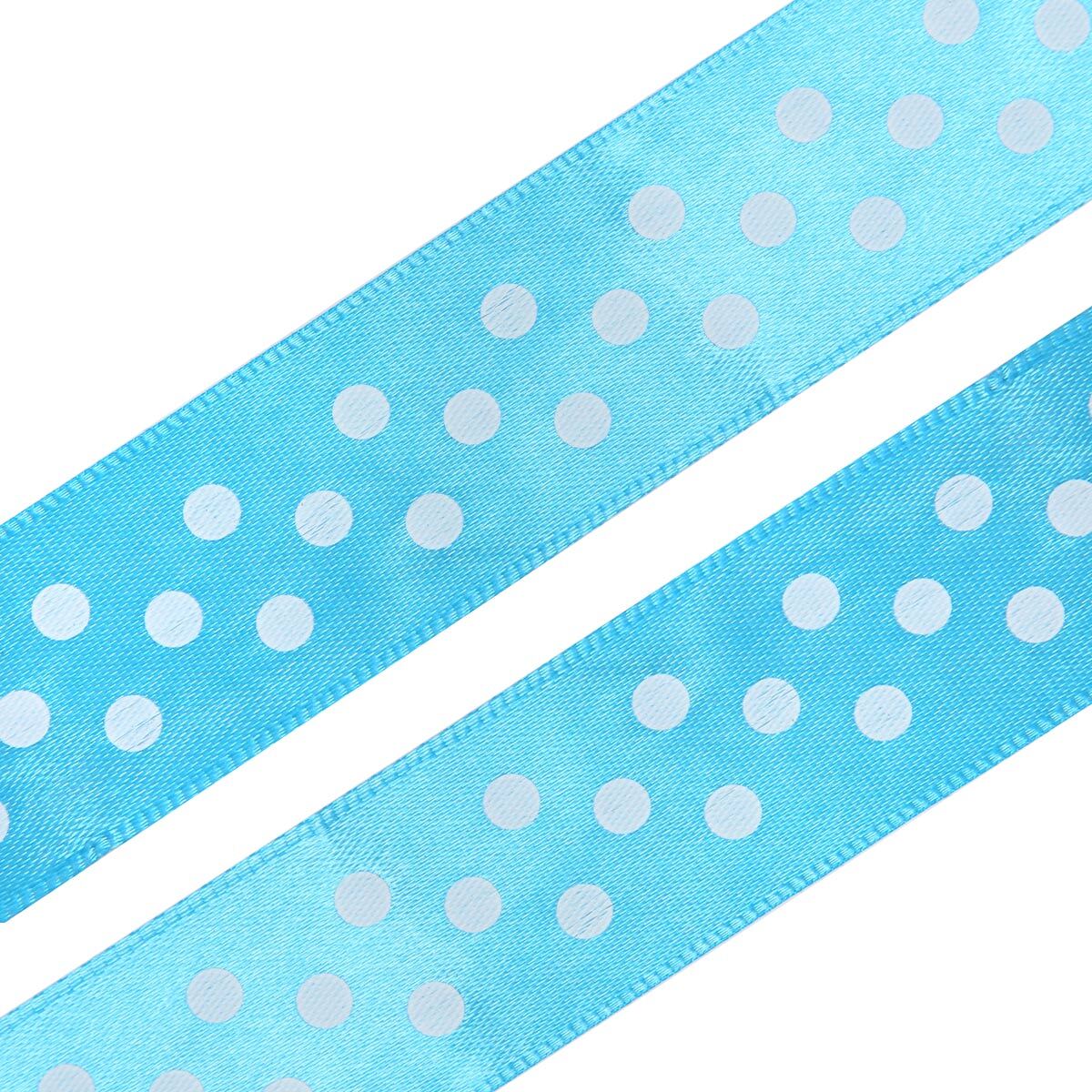 Лента атласная в горошек 25.0 мм / 3 метра, голубой, Globus
