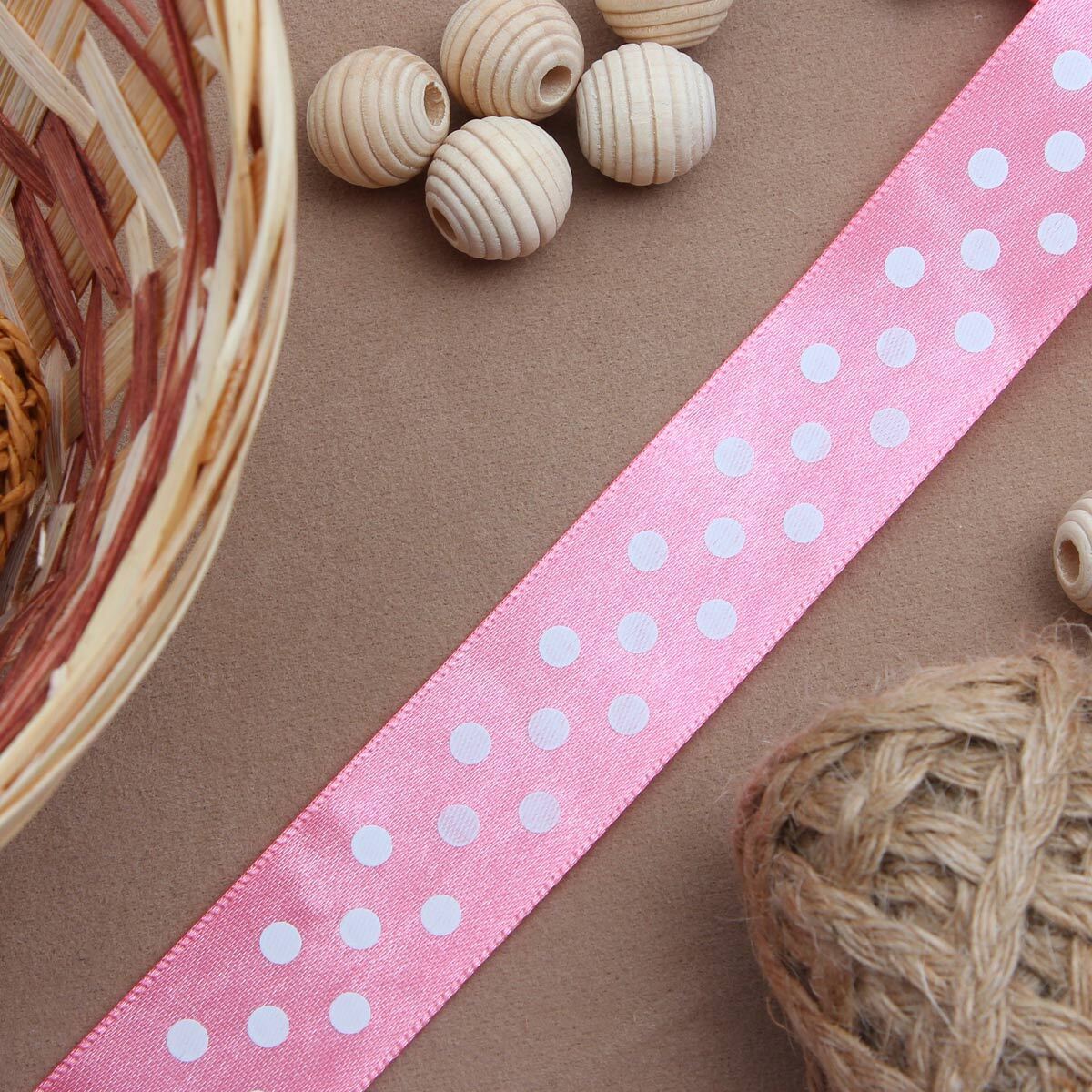 Лента атласная в горошек 25.0 мм / 3 метра, розовый, Globus