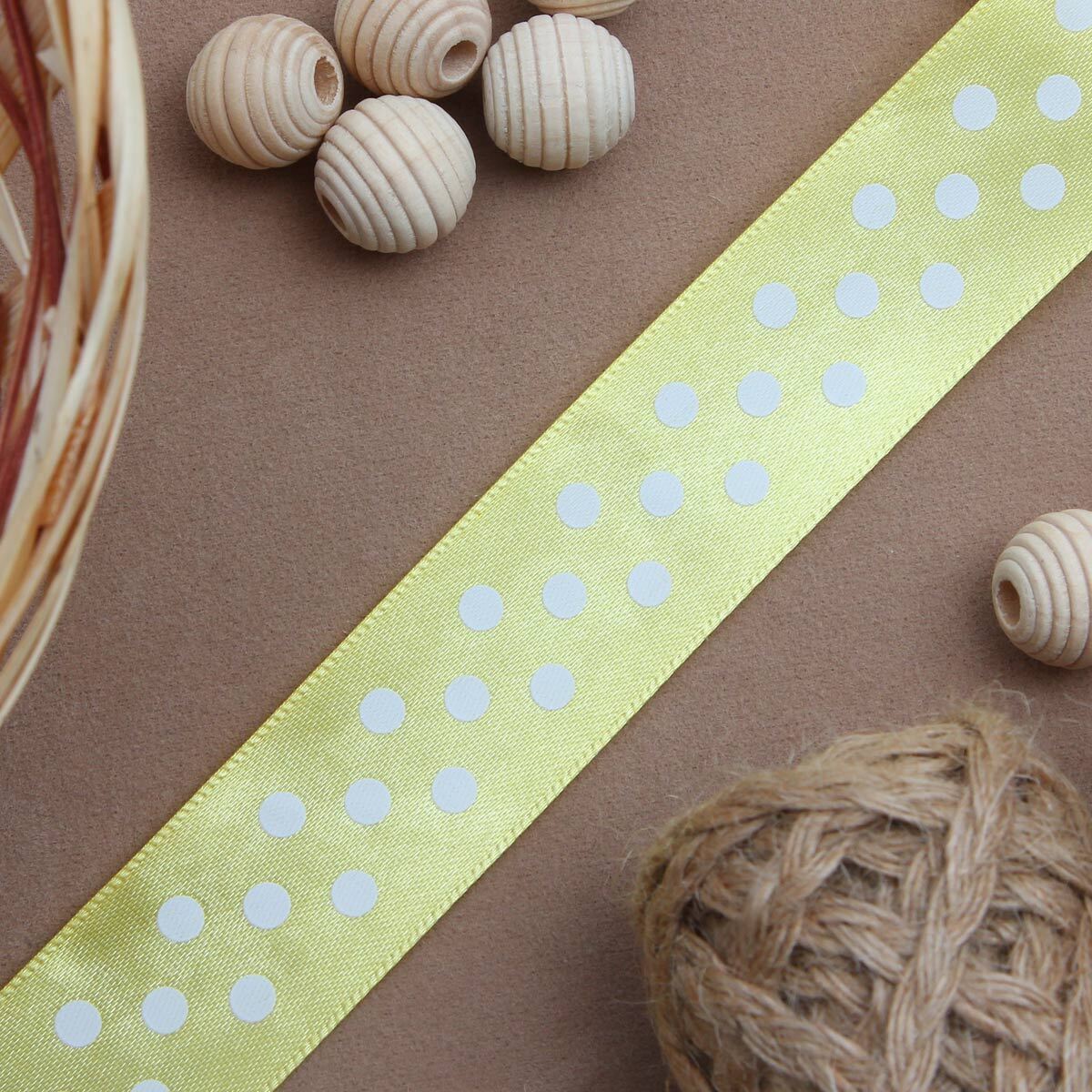 Лента атласная в горошек 25.0 мм / 3 метра, желтый, Globus