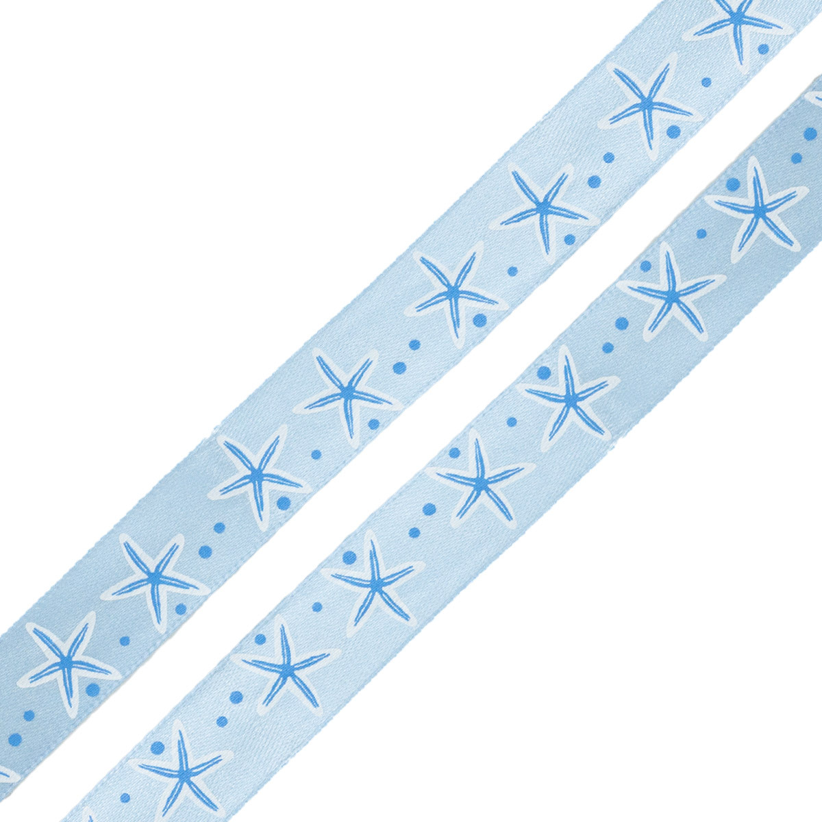 Лента атласная с рисунком 15.0 мм / 3 метра, Морская звезда (голубой), Globus