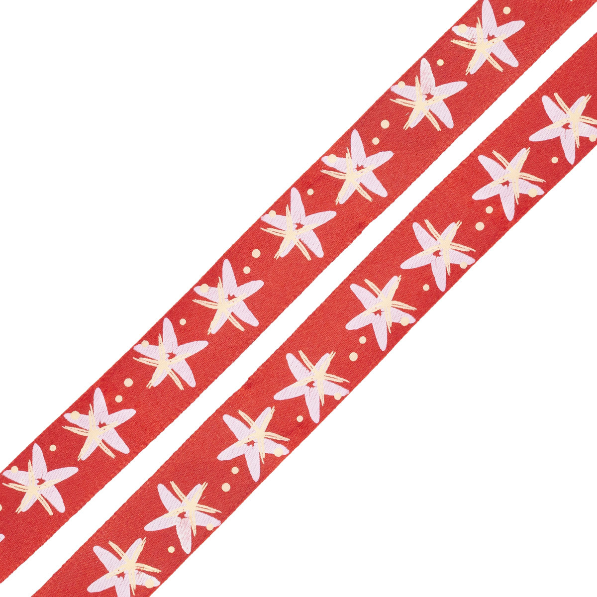 Лента атласная с рисунком 15.0 мм / 3 метра, Морская звезда (красный), Globus