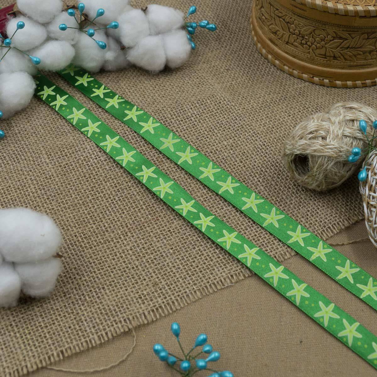 Лента атласная с рисунком 15.0 мм / 3 метра, Морская звезда (зеленый), Globus