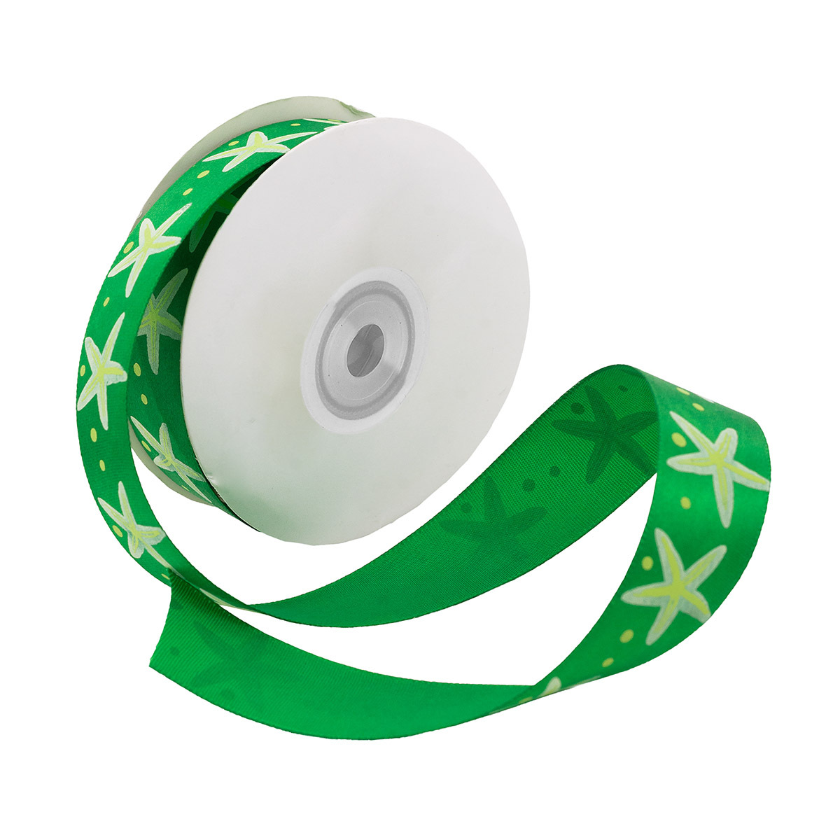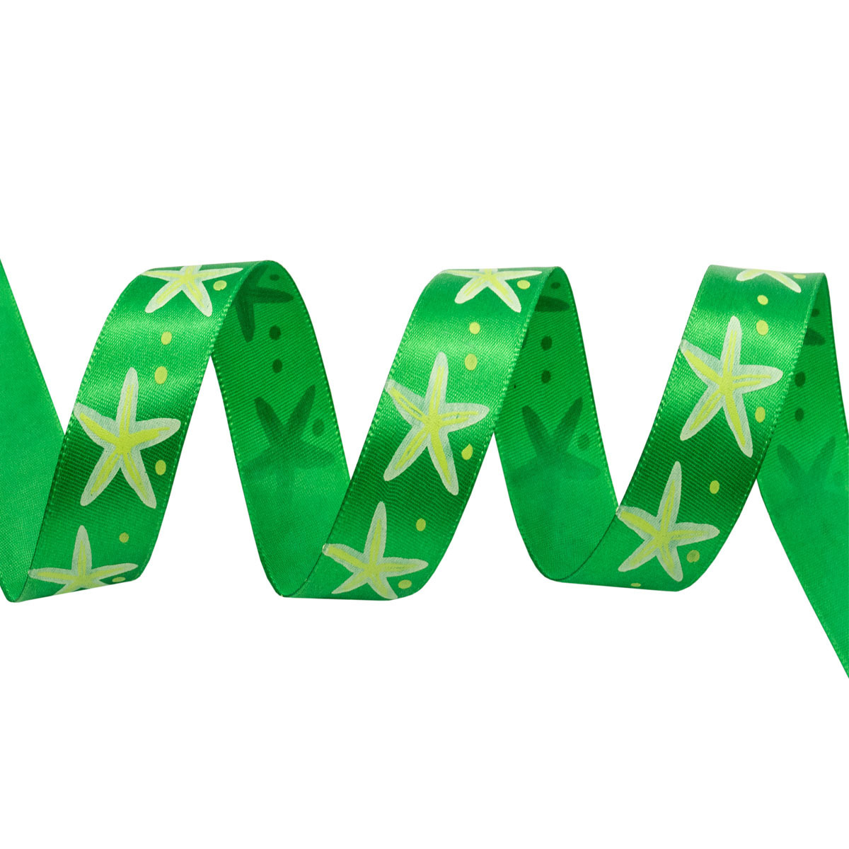 Лента атласная с рисунком 25.0 мм / 22.5±1 метров, Морская звезда, зеленый, Globus