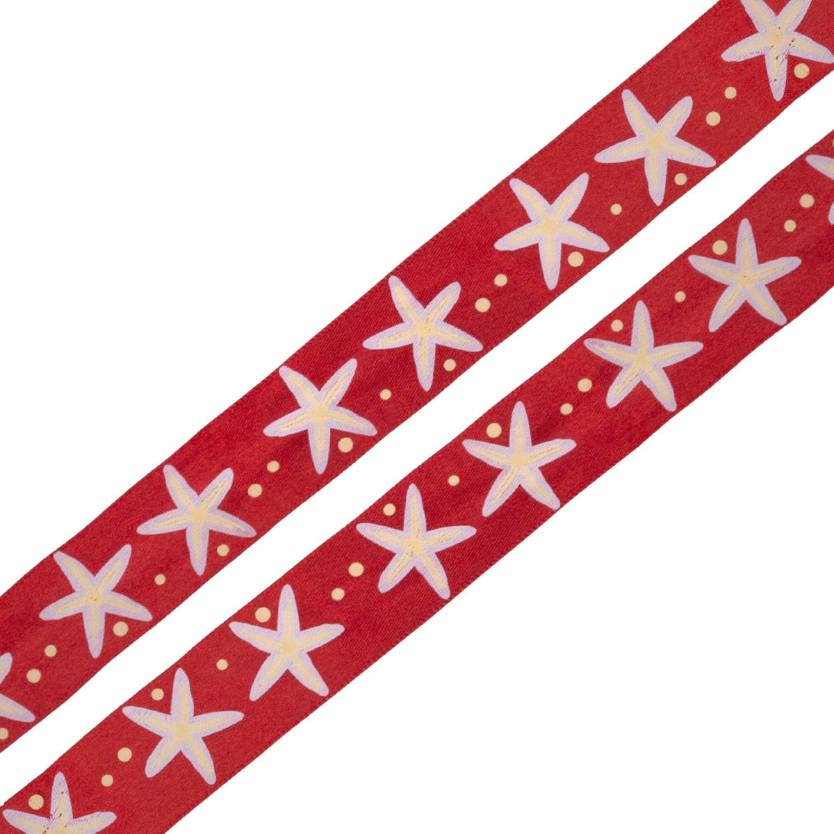 Лента атласная с рисунком 25.0 мм / 3 метра, Морская звезда (красный), Globus