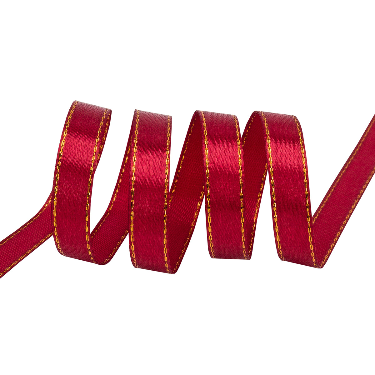 Лента атласная 1-сторонняя 10.0 мм / 20 метров, с золотым краем, т.красный