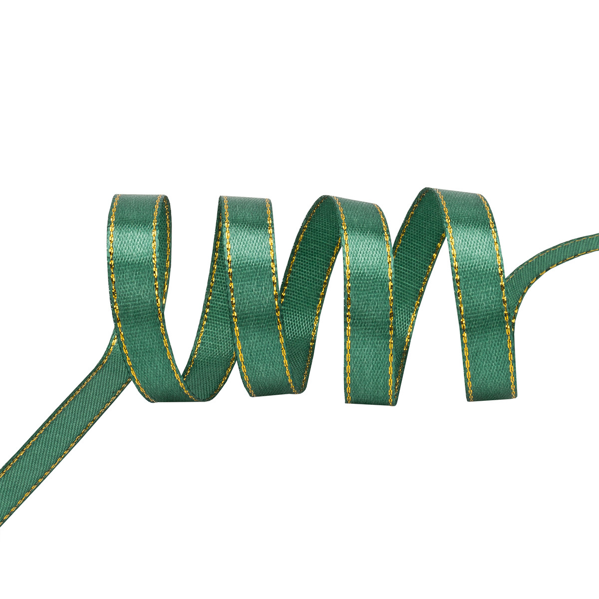 Лента атласная 1-сторонняя 10.0 мм / 20 метров, с золотым краем, т.зелёный