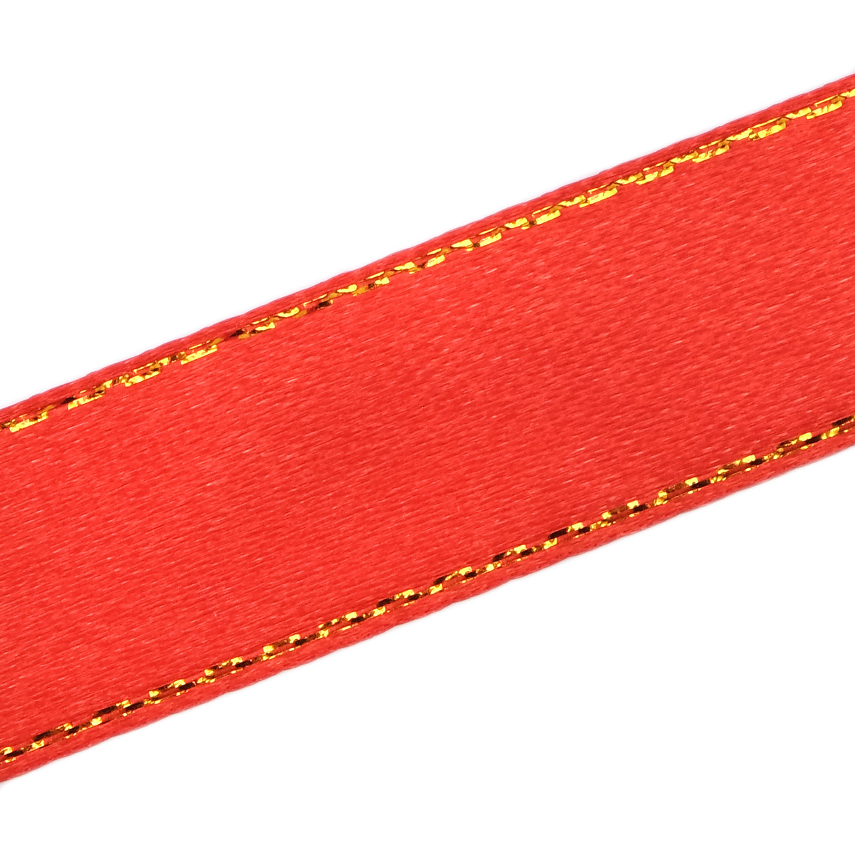 Лента атласная 1-сторонняя 15.0 мм / 22.86±1 метров, с золотой нитью, 163 красный, Globus