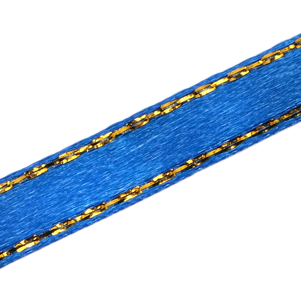 Лента атласная 1-сторонняя 6.0 мм / 22.86±1 метров, с золотой нитью, 40 ярк.синий, Globus