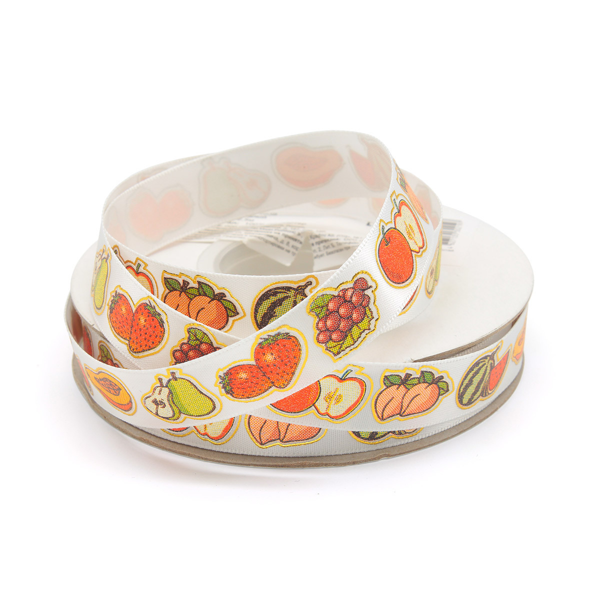 Лента атласная с надписью 16.0 мм / 22.5±1 метров, Фрукты, 029 белый, Globus