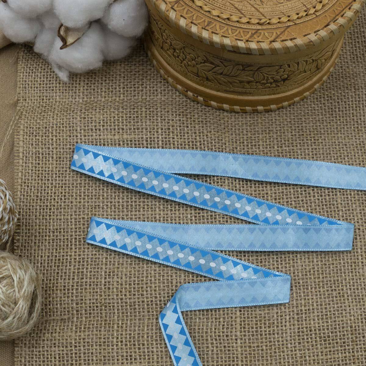 Лента атласная с рисунком Ромбы 15.0 мм / 3 метра, синий, Globus