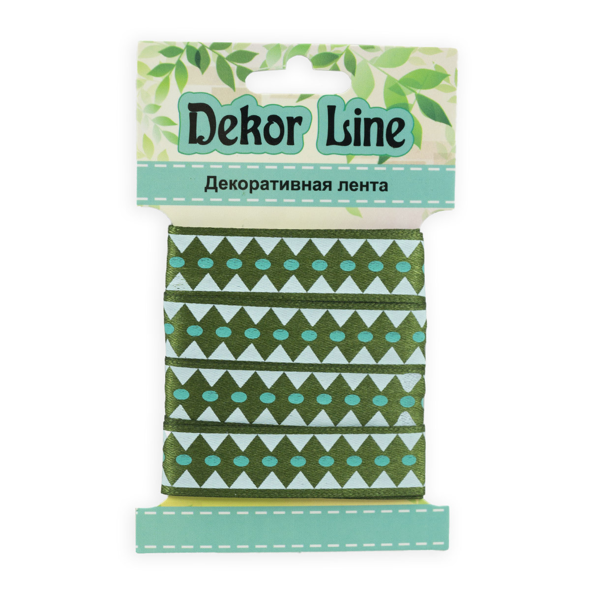 Лента атласная с рисунком Ромбы 15.0 мм / 3 метра, зеленый, Globus