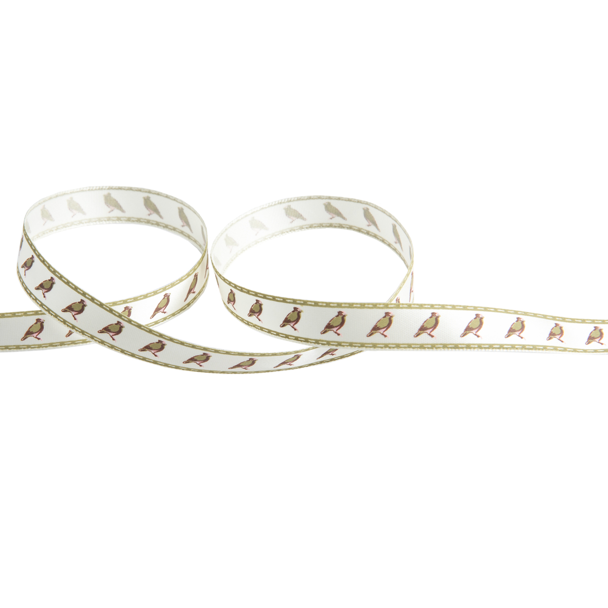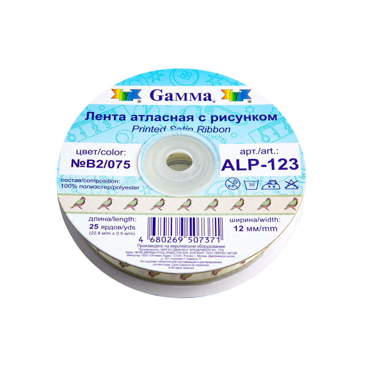 Лента атласная с рисунком 12.0 мм / 22.8 метров, B2/075 Птицы/кремовый, Gamma ALP-123