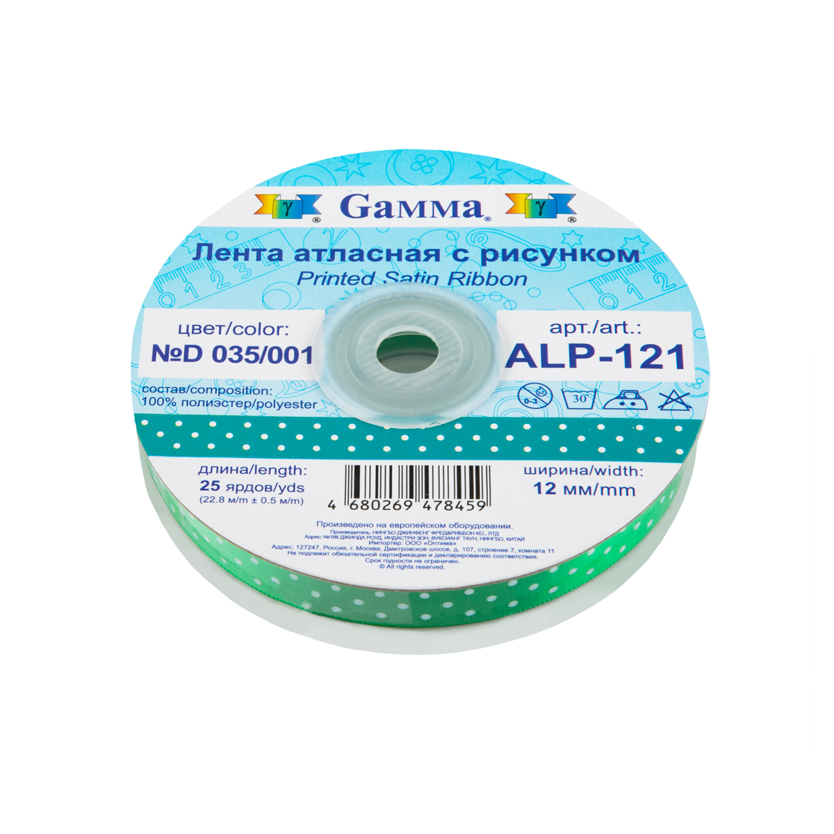 Лента атласная с рисунком 12.0 мм / 22.8 метров, D 035/001зеленый/белый, Gamma ALP-121