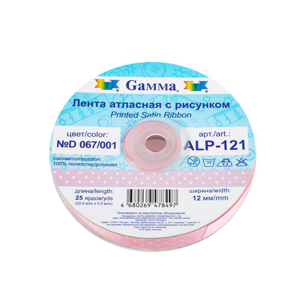 Лента атласная с рисунком 12.0 мм / 22.8 метров, D 067/001бл.-розовый/белый, Gamma ALP-121