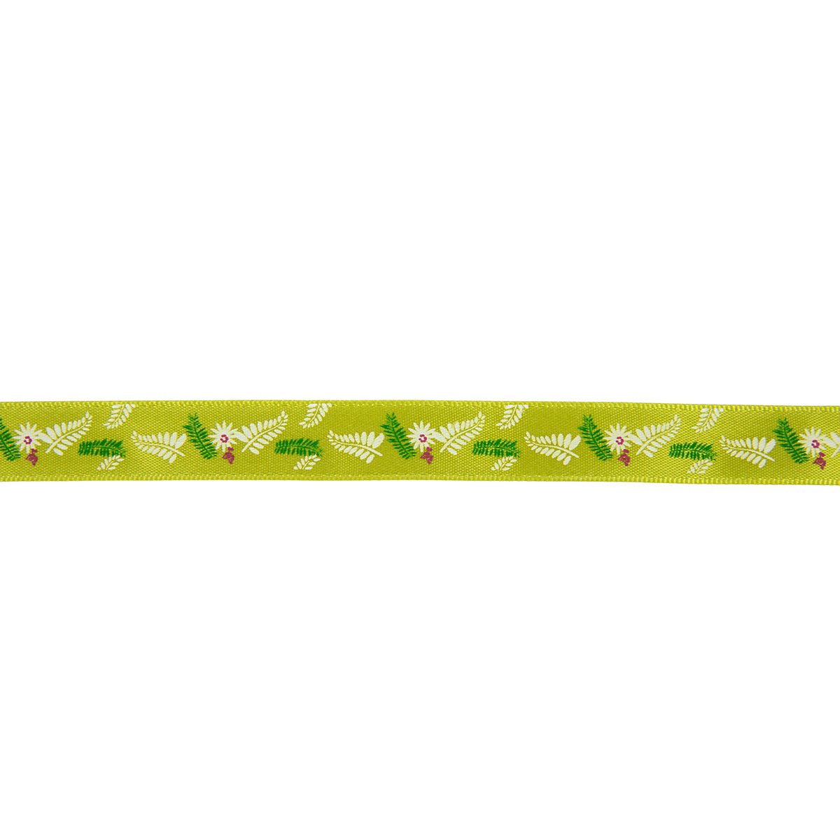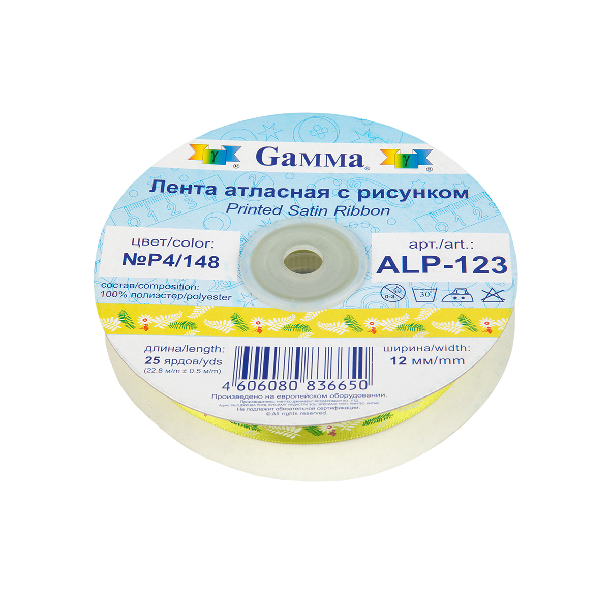 Лента атласная с рисунком 12.0 мм / 22.8 метров, P4/148 листочки/св.салатовый, Gamma ALP-123
