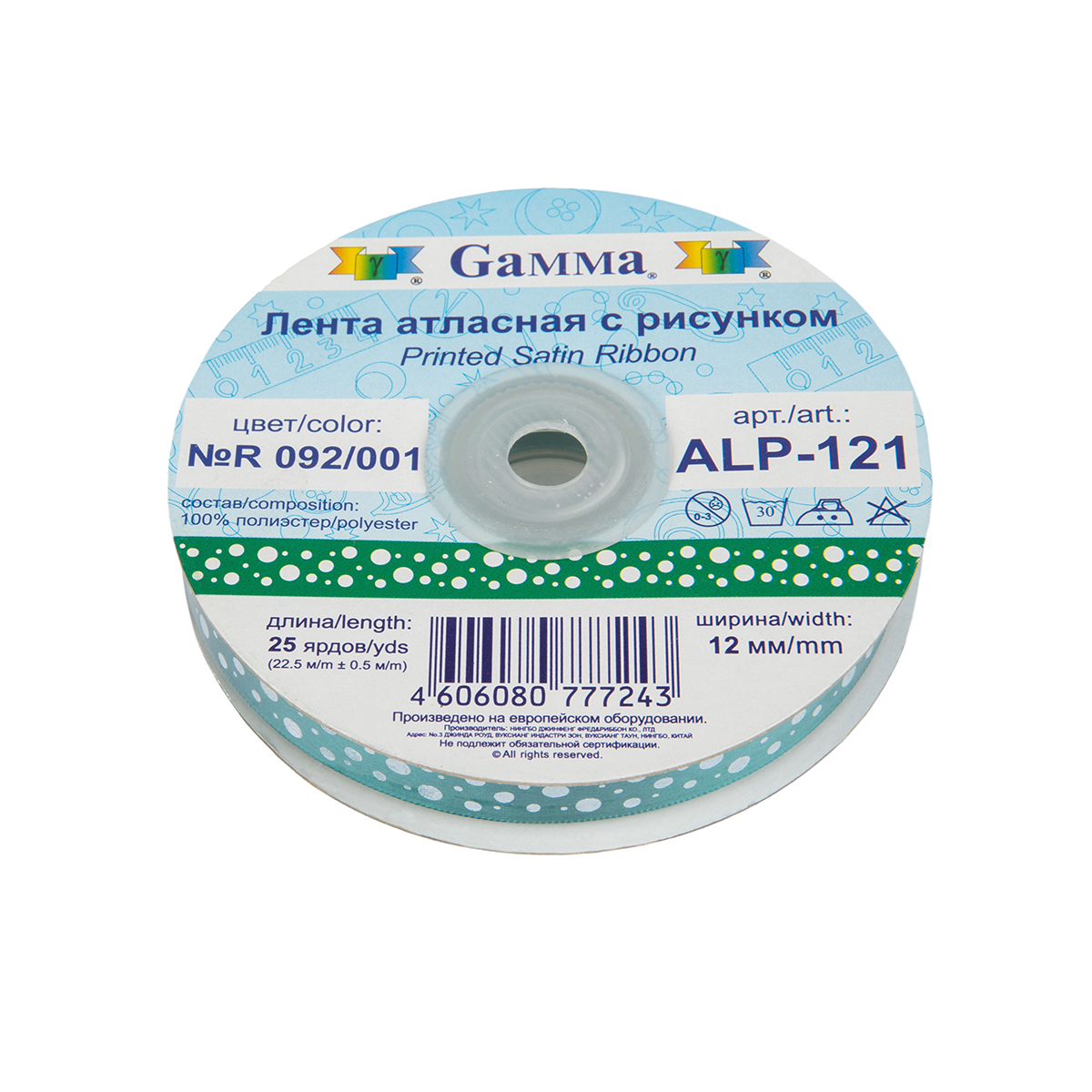 Лента атласная с рисунком 12.0 мм / 22.8 метров, R 092/001 т.зеленый/белый, Gamma ALP-121