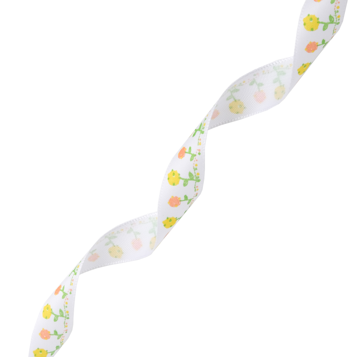 Лента атласная с рисунком 15.0 мм / 22.5±1 метров, Цветы, белый, Globus