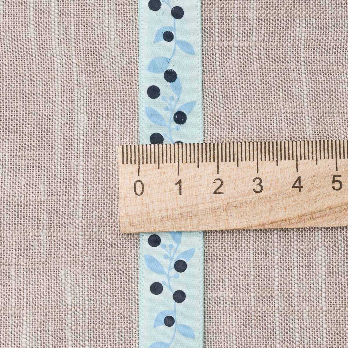 Лента атласная с рисунком 15.0 мм / 22.5±1 метров, Ягодная ветвь, голубой, Globus