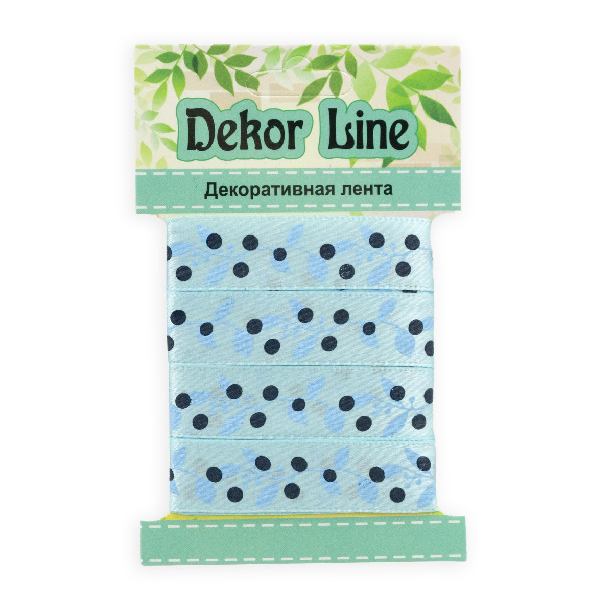 Лента атласная с рисунком 15.0 мм / 3 метра, Ягодная ветвь (голубой), Globus