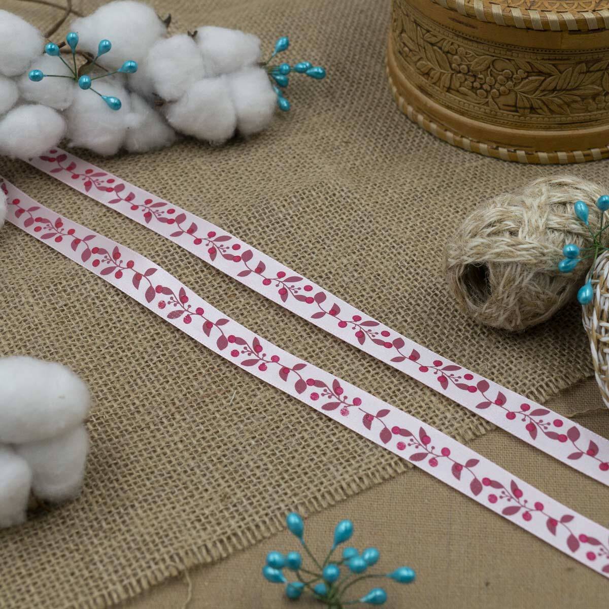 Лента атласная с рисунком 15.0 мм / 3 метра, Ягодная ветвь (розовый), Globus