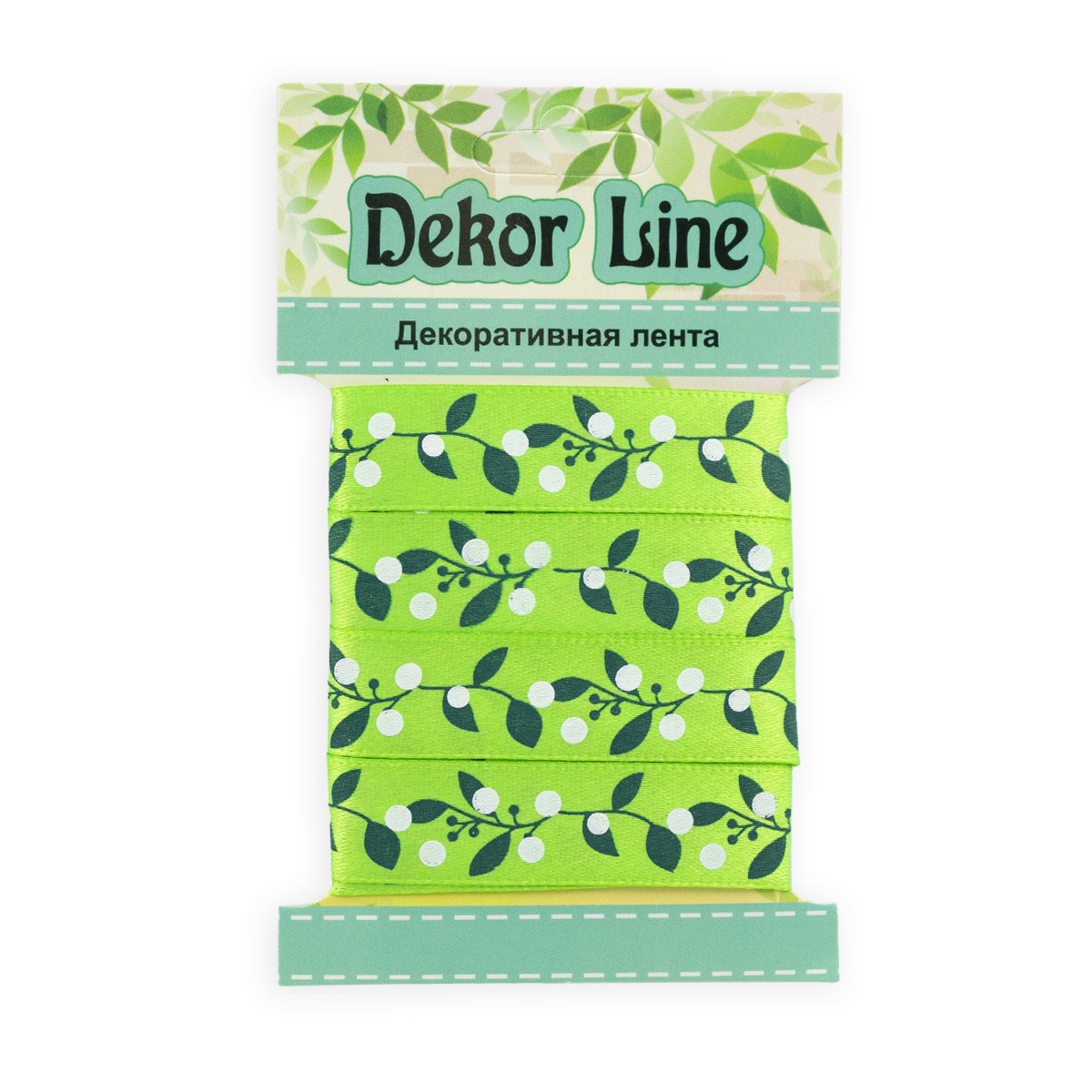 Лента атласная с рисунком 15.0 мм / 3 метра, Ягодная ветвь (зеленый), Globus