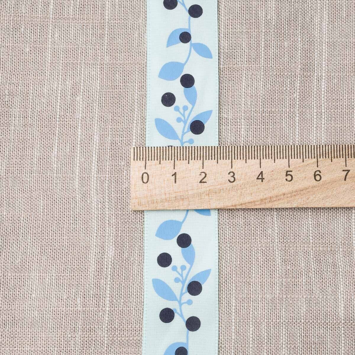 Лента атласная с рисунком 25.0 мм / 22.5±1 метров, Ягодная ветвь, голубой, Globus