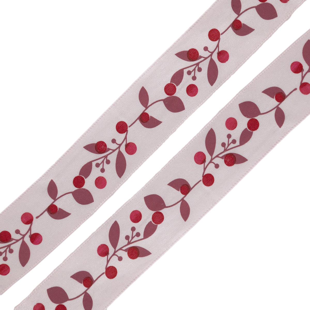 Лента атласная с рисунком 25.0 мм / 3 метра, Ягодная ветвь (розовый), Globus