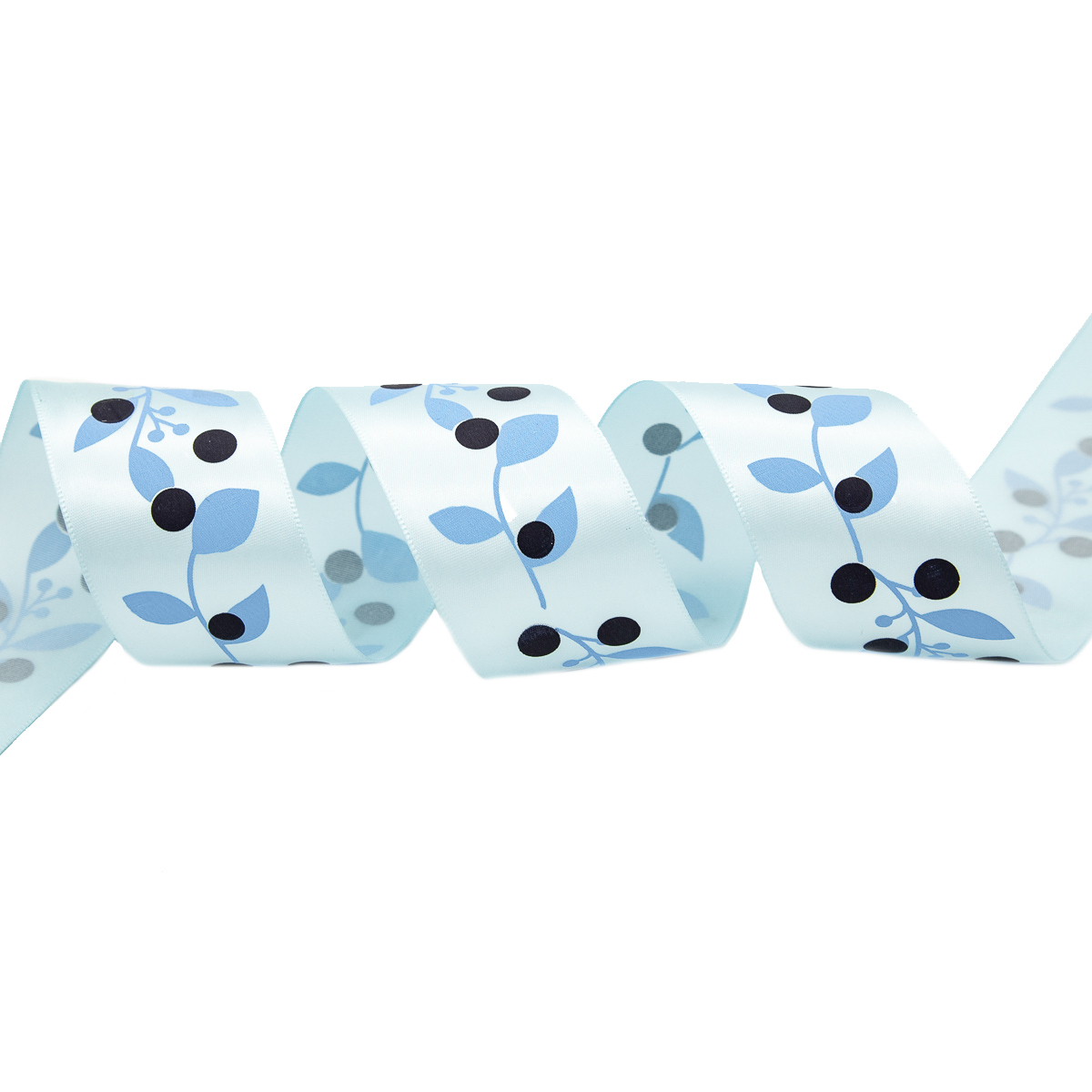 Лента атласная с рисунком 45.0 мм / 22.5±1 метров, Ягодная ветвь, голубой, Globus