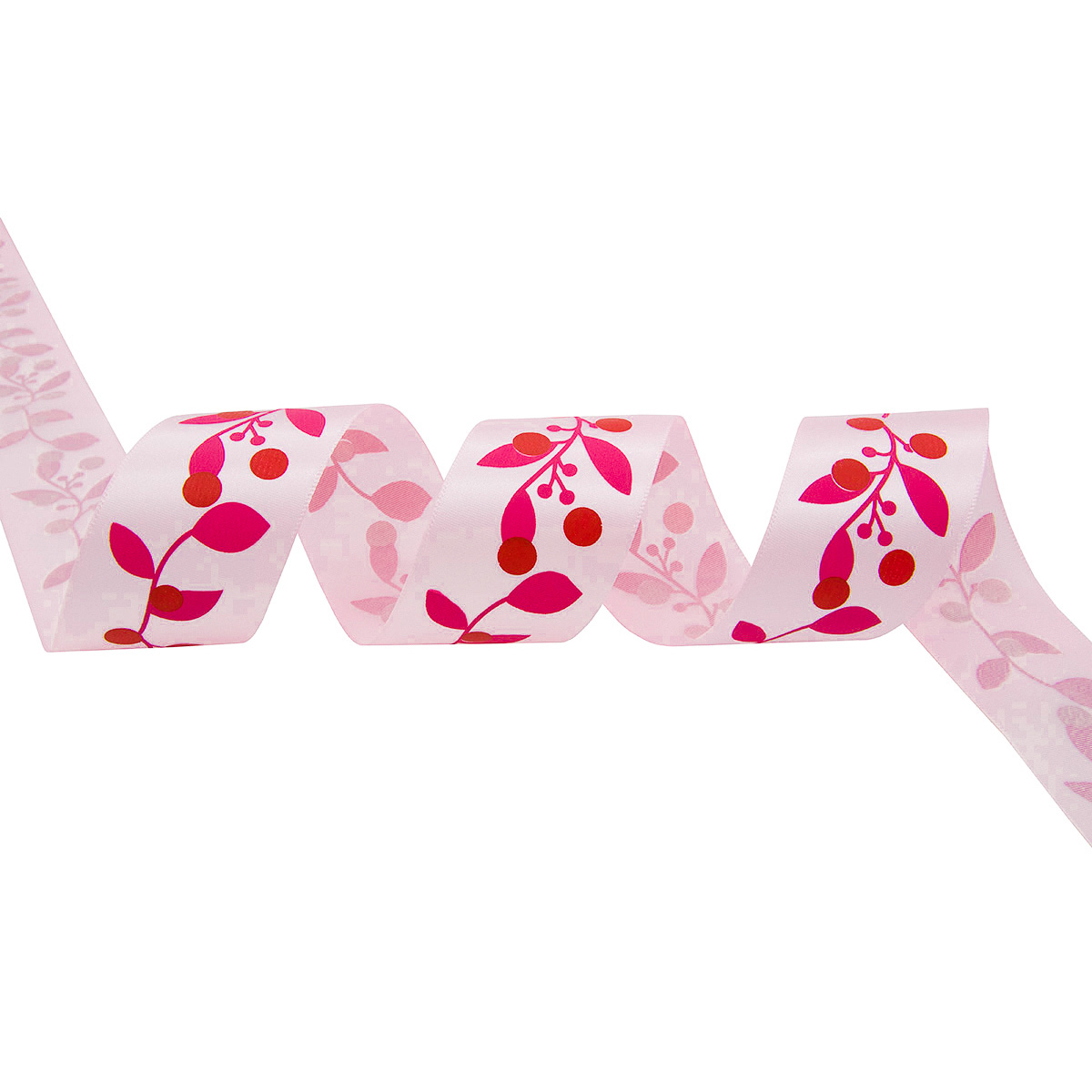 Лента атласная с рисунком 45.0 мм / 22.5±1 метров, Ягодная ветвь, розовый, Globus