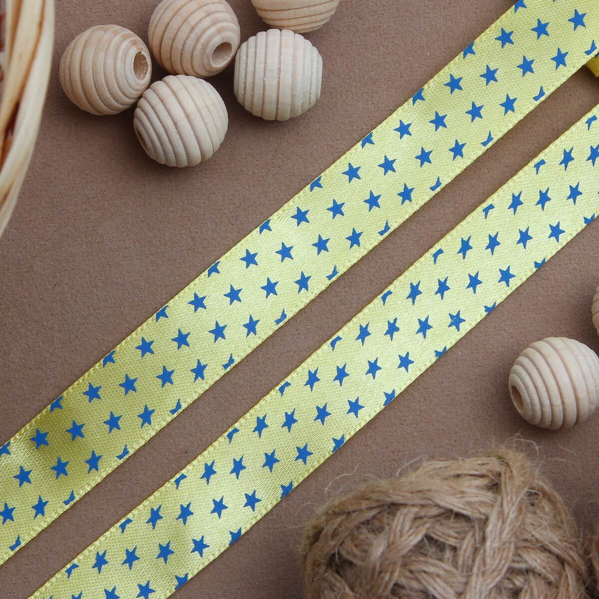 Лента атласная с рисунком 15.0 мм / 3 метра, Звездочки (желтый), Globus
