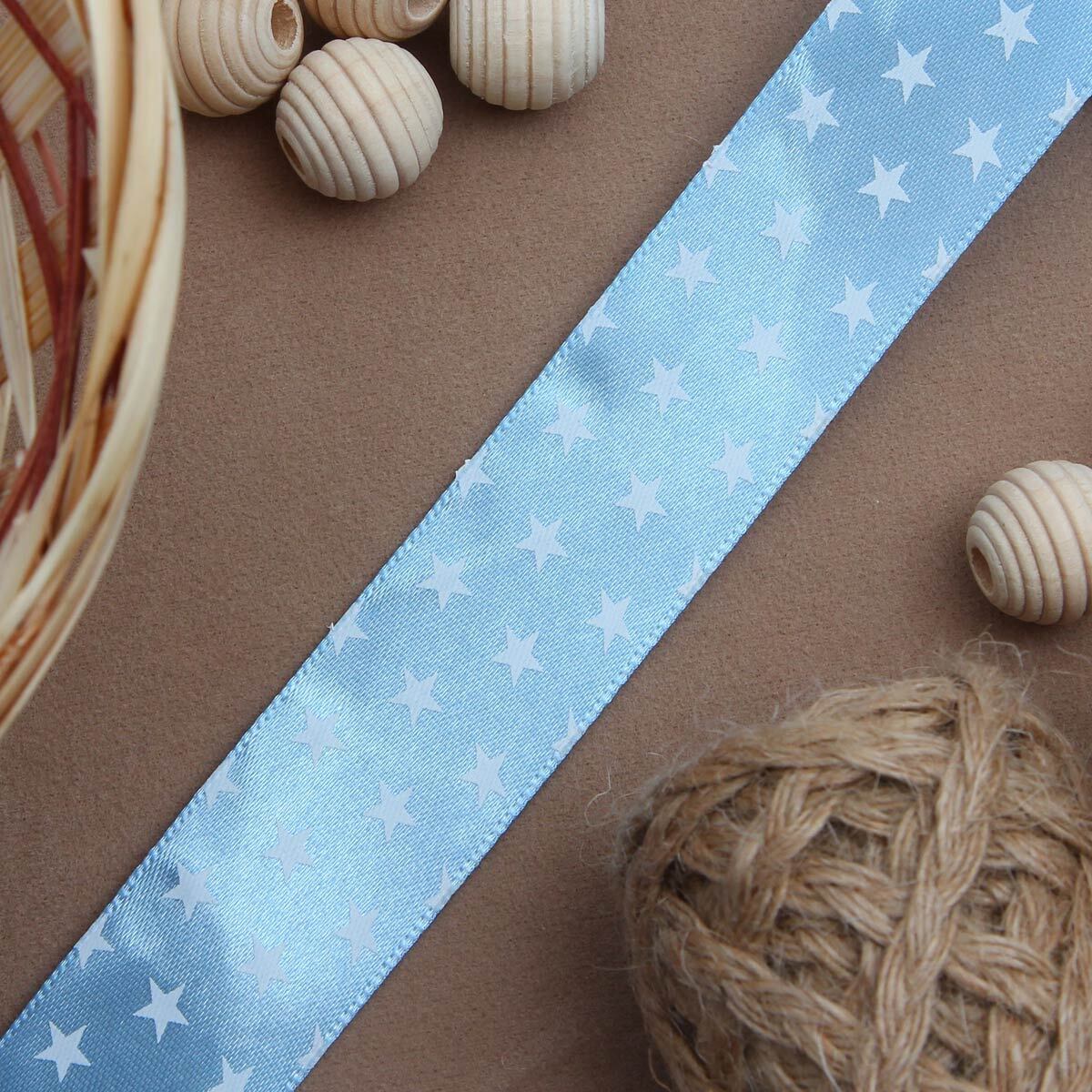 Лента атласная с рисунком 25.0 мм / 3 метра, Звездочки (голубой), Globus