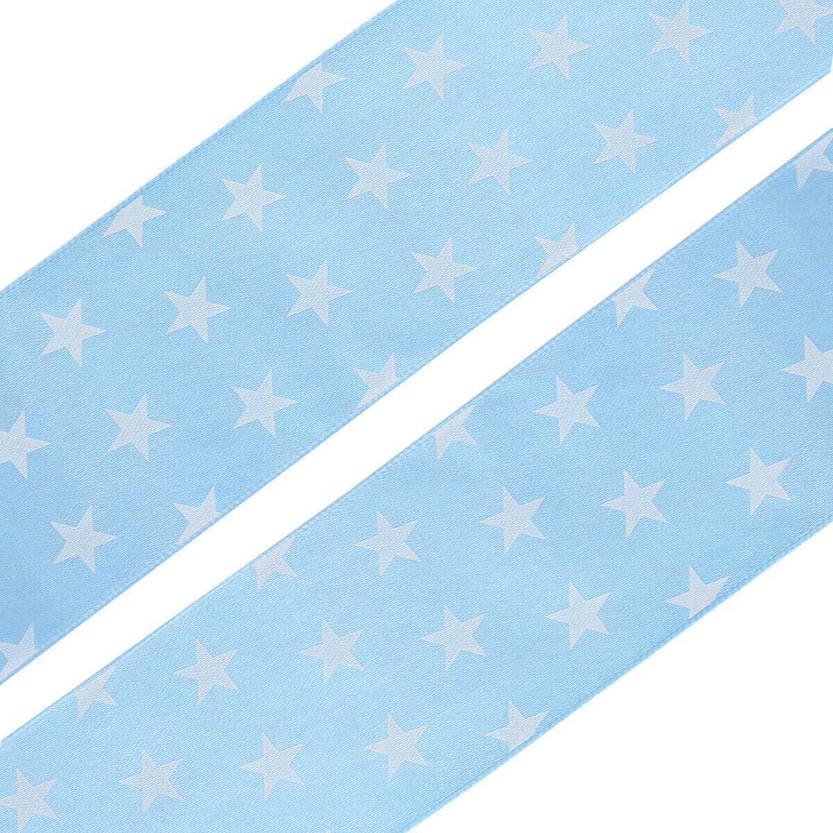Лента атласная с рисунком 45.0 мм / 3 метра, Звездочки (голубой), Globus