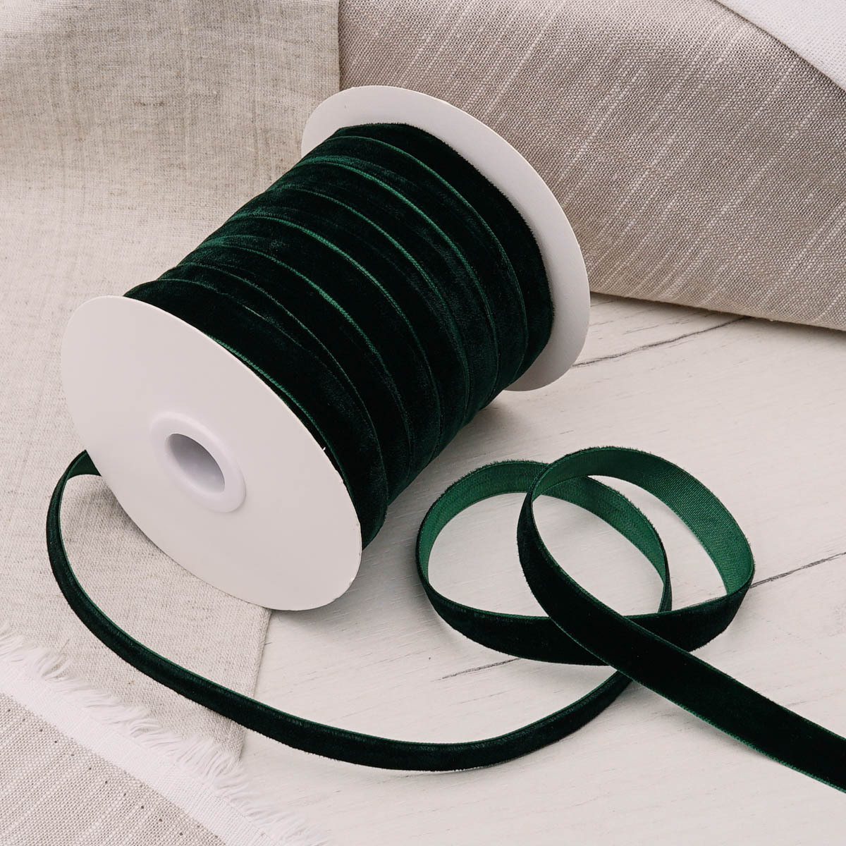 Лента бархатная (тесьма) 12.0 мм / 32.9±2 метров, 0081-1211, 165 темно-зеленый