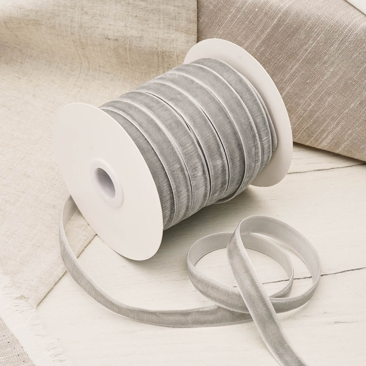 Лента бархатная (тесьма) 12.0 мм / 32.9±2 метров, 0081-1211, 182 серый
