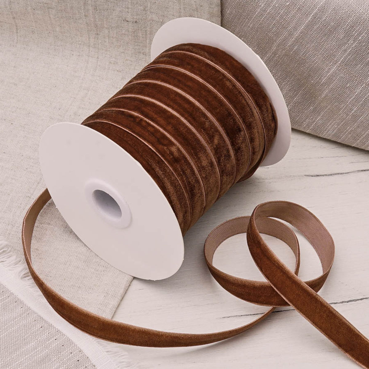 Лента бархатная (тесьма) 12.0 мм / 32.9±2 метров, 0081-1211, 208 коричневый