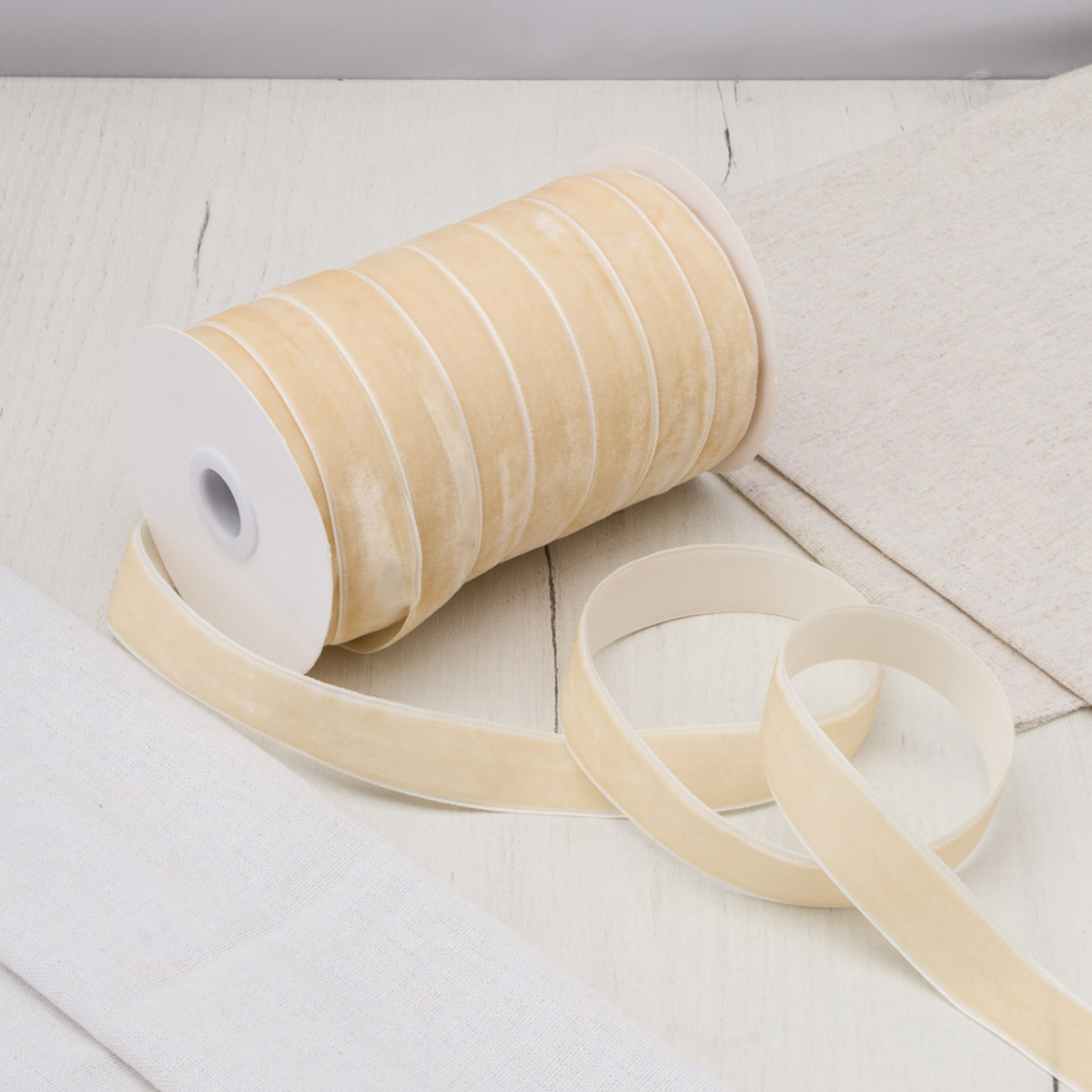 Лента бархатная (тесьма) 20.0 мм / 32.9±2 метров, 0081-1901, 28 сливочный